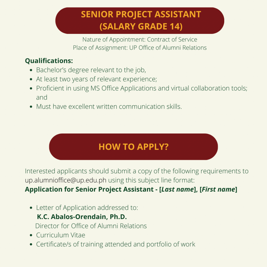 -Candidate must be a graduate of a degree program (associate’s, graduate diploma, or MA) under UP Open University.